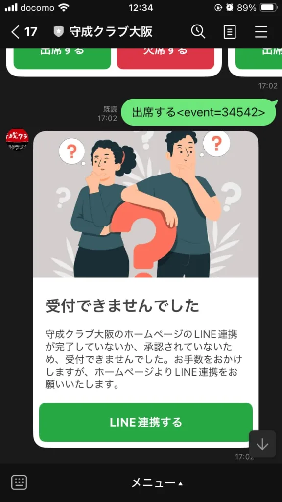 出欠の登録をより便利にするため、守成クラブ大阪LINE公式アカウントからカンタンに出欠の申請を行うことができるようになりました。