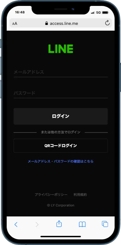 ※このログイン画面は個人のLINEアカウントへのログイン画面です。守成クラブ大阪のサイトとは異なりますのでご注意ください。